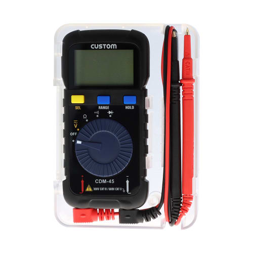 コンパクトスリムなボディに電圧(直流、交流)、抵抗、導電チェック機能(ブザー、LED)、ダイオード機能を持たせたシンプルなデジタルマルチメーター。テストリードは脱着交換可能、プローブ先端は金メッキ処理加工。