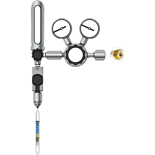 コンプレッサーエアーの中の圧縮空気を専用減圧弁を用いて検知管に通気する事により、圧縮空気中の不純物を簡単に測定することができます。<注意>