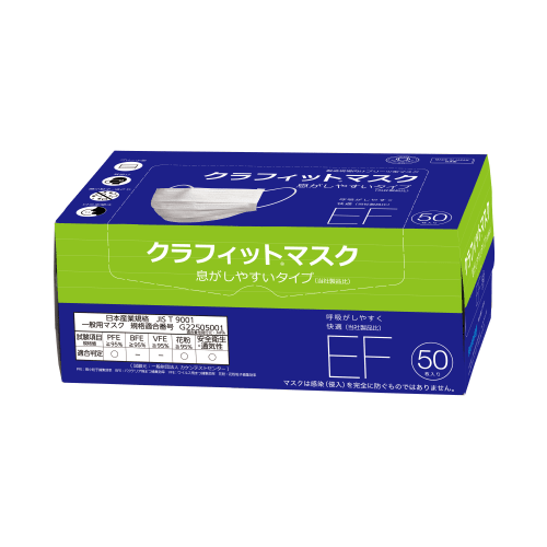 超極細繊維フィルターが細かい粉塵や飛沫を強力に捕集します。呼気抵抗が低く、着用時の息苦しさが抑制されています。