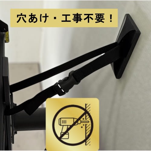 壁への穴あけ工事不要。工具不要の簡単設置が可能。