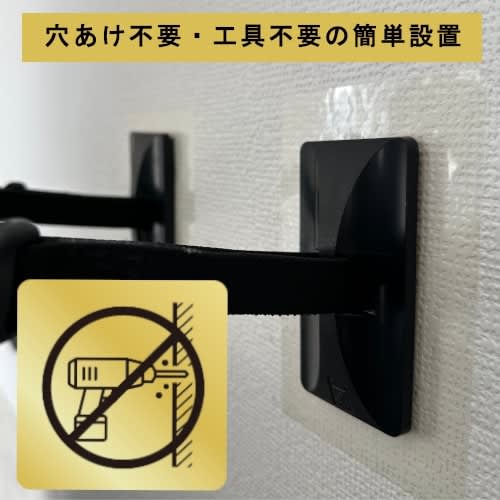 壁への穴あけ工事不要。工具不要の簡単設置が可能。