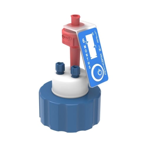 SCATセーフティキャップは、HPLCへの溶媒の安全な供給を可能にする密閉キャップです。スクリューキャップは有害な蒸気を遮断し、HPLCシステムを汚染から保護します。GL/S40ねじ山付きのSCATセーフティキャップは、MERCKなどのラボボトルに適合します。