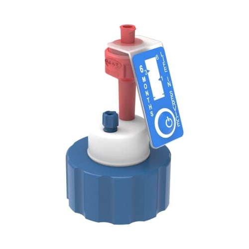 SCATセーフティキャップは、HPLCへの溶媒の安全な供給を可能にする密閉キャップです。スクリューキャップは有害な蒸気を遮断し、HPLCシステムを汚染から保護します。GL/S40ねじ山付きのSCATセーフティキャップは、MERCKなどのラボボトルに適合します。