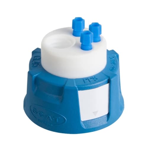 SCAT安全廃棄物キャップは、溶媒およびHPLC廃棄物を安全に廃棄するための密閉キャップです。3層の活性炭を備えたSCAT排気フィルターは、溶媒、酸、アルカリからの蒸気を吸着します。また、安全な圧力均等化と作業安全を確保します。GL/S40ねじ山付きの安全廃棄物キャップは、SCHOTT、DURAN、WHEATON、KIMBLE (DWK)などのメーカーに適合します。