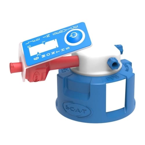 SCATセーフティキャップは、HPLCへの溶媒の安全な供給を可能にする密閉キャップです。角度付きタイプは、実験室の狭いスペースに適しており、高さを有効活用できます。GL45ネジ付きのSCATセーフティキャップは、SCHOTT、DURAN、WHEATON、KIMBLE (DWK)などのラボボトルに適合します。
