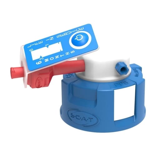 SCATセーフティキャップは、HPLCへの溶媒の安全な供給を可能にする密閉キャップです。角度付きタイプは、実験室の狭いスペースに適しており、高さを有効活用できます。GL45ネジ付きのSCATセーフティキャップは、SCHOTT、DURAN、WHEATON、KIMBLE (DWK)などのラボボトルに適合します。