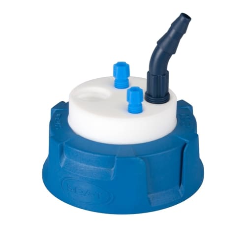 SCAT安全廃棄物キャップは、溶媒およびHPLC廃棄物を安全に廃棄するための密閉キャップです。3層の活性炭を備えたSCAT排気フィルターは、溶媒、酸、アルカリからの蒸気を吸着します。これにより、安全な圧力均等化と作業者の安全が確保されます。
