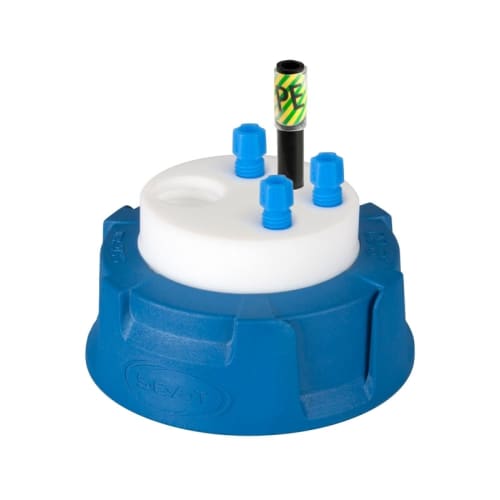 SCAT安全廃棄物キャップは、溶媒およびHPLC廃棄物を安全に廃棄するための密閉キャップです。3層の活性炭を備えたSCAT排気フィルターは、溶媒、酸、アルカリからの蒸気を吸着します。これにより安全な圧力均等化が確保され、アース接続により作業安全性がさらに向上します。