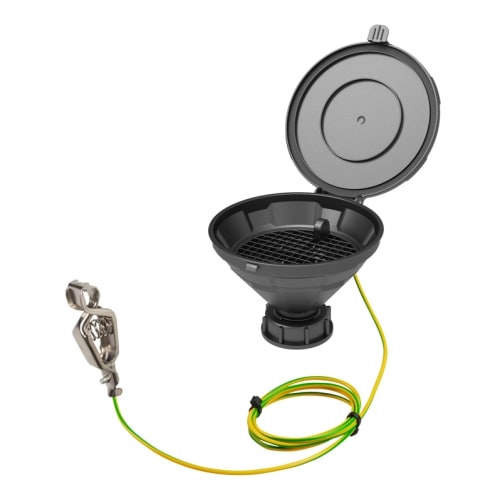 蓋付き漏斗 MARCO、S55、PE-HD静電導電性、取り外し可能なふるいとアースケーブル付き、漏斗径 外径157 mm(内径140 mm) |