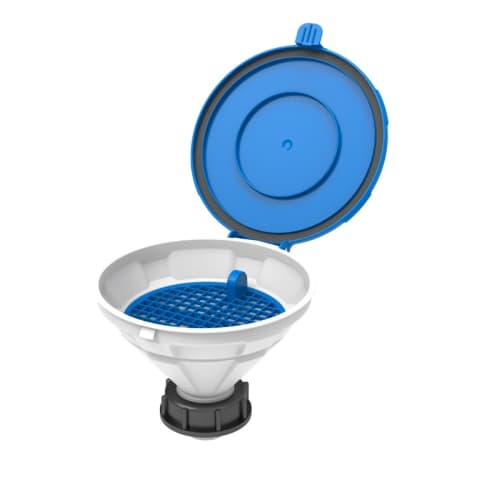 蓋付き漏斗 MARCO、S55、PE-HD、取り外し可能なふるい付き、漏斗径 外径157 mm(内径140 mm) |