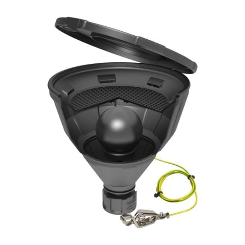 漏斗ARNOLD、ボールバルブと蓋付き、GL45、PE-HD静電導電性、スプラッシュガード、取り外し可能なふるい、アースケーブル付き、漏斗直径 = 200 mm |