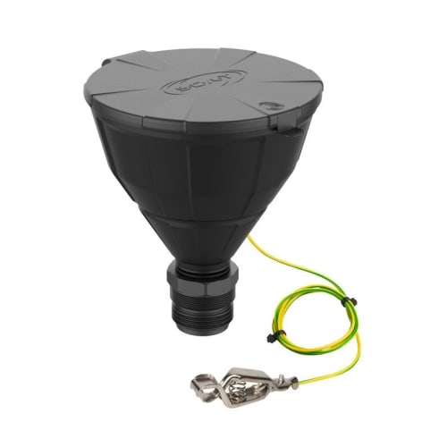 | 仕様 | バレル ARNOLD 用漏斗、ボールバルブおよび蓋付き、ダブルスレッド R2" BSP/G2" (m) + Trisure BCS / BSC 56x4 (m)、PE-HD 静電導電性、スプラッシュガード、取り外し可能なふるい、アースケーブル付き、漏斗直径 = 200 mm |