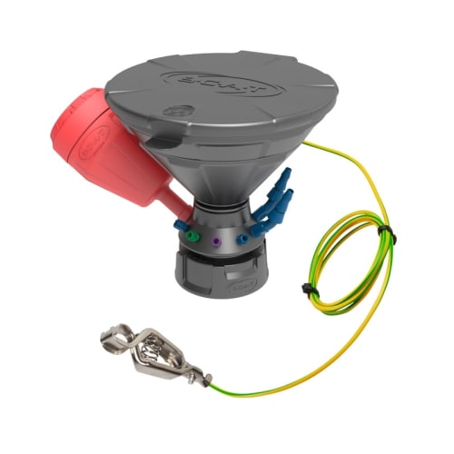 安全廃棄物キャップ + 漏斗 JAN、S60/61、静電導電性アースケーブル付き、安全漏斗、外径1.6/2.3/3.2 mm x 4、PFAブラインドプラグ x 4、内径5.0 - 11.5 mm x 3、PEブラインドプラグ x 3 + 排気フィルターM、スプラッシュガードおよび交換インジケーター付き (410535) |