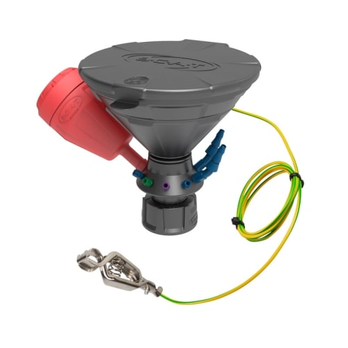 安全廃棄物キャップ + 漏斗 JAN、GL45、静電導電性アースケーブル付き、安全漏斗、4x 1,6/2,3/3,2 mm OD、4x PFAブラインドプラグ、3x 5,0 - 11,5mm ID、3x PEブラインドプラグ + 排気フィルターM、スプラッシュガードおよび交換インジケーター付き (410535) |