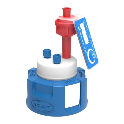 SCATセーフティキャップは、HPLCへの溶媒の安全な供給を保証する密閉キャップです。スクリューキャップは有害な蒸気を遮断し、HPLCシステムを汚染から保護します。GL45ねじ山を備えたSCATセーフティキャップは、SCHOTT、DURAN、WHEATON、KIMBLE (DWK)などのラボボトルに適合します。
