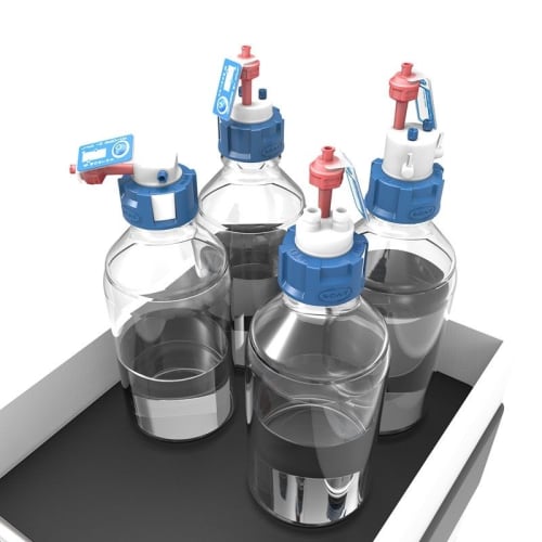 SCATセーフティキャップは、HPLCへの溶媒の安全な供給を可能にする密閉キャップです。シャットオフバルブ付きのスクリューキャップは、キャピラリー内のエアポケットを防ぎ、容器交換を容易にします。GL45ねじ山のSCATセーフティキャップは、SCHOTT、DURAN、WHEATON、KIMBLE (DWK)などのラボボトルに適合します。
