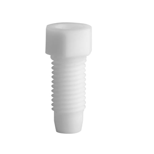 分取HPLCアプリケーションに最適です。PTFE製で、最高の耐薬品性を備えています。キャピラリー接続部(UNF 5/16インチねじ)にチューブを固定するためのものです。一体型のフィッティングにより、別途シーリングコーン(フェルール)が不要になります。円錐形状がチューブをしっかりと固定し、接続部を密閉します。