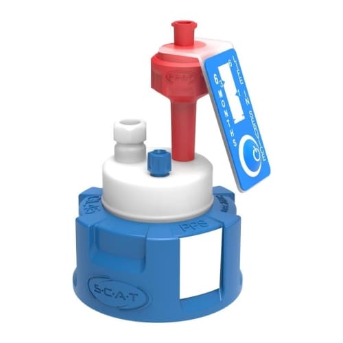 SCATセーフティキャップは、分取HPLCへの溶媒の安全な供給を保証する密閉キャップです。スクリューキャップの接続部は、大口径および大流量に対応するよう特別に設計されています。GL45ネジ山を備えたSCATセーフティキャップは、SCHOTT、DURAN、WHEATON、KIMBLE (DWK)などのラボボトルに適合します。