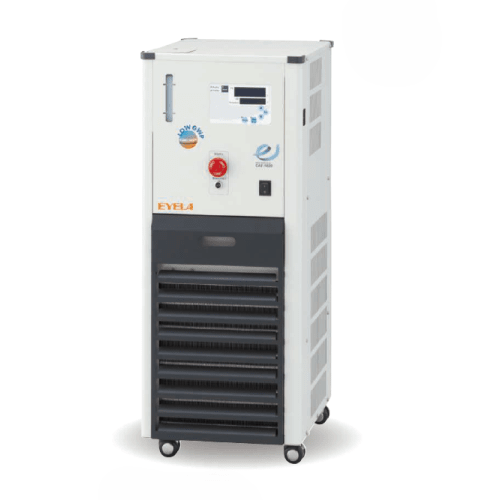 インバーターシステムによる冷却水循環装置クールエース・エコシリーズです。従来製品より約47%の省エネ効果で、消費電力、CO2削減に貢献します。CAE-1020S型は産業分野での使用を考慮して緊急停止ボタン、アラーム出力端子を装備しています。
