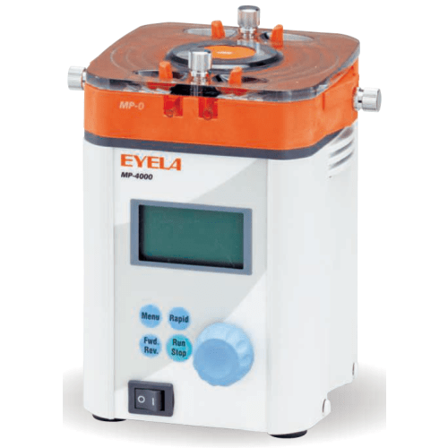 回転の安定性を活かし回転数を流量換算表示しました。各チューブごとに流量換算値を表示できます(回転数を流量に換算した値で流量の実測値ではありません)。DCサーボモータの採用によりモータ可変倍率3000倍を実現しました。1本のチューブで広範囲の吐出流量が得られます。