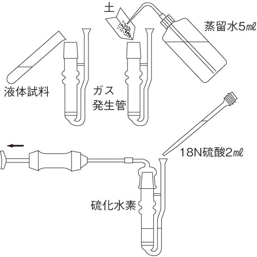 海、湖、河川、または排水や泥土、土壌に含まれるすべての硫化物を、現場で短時間(約10分)で測定できます。ガス発生管に試料を取り、酸を添加し、硫化水素の発生にてその量を検知管で測定します。