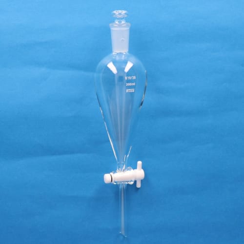 Fine共通摺合分液ロート 200mL 球栓19/38 スキーブ型 PTFEコック付 |