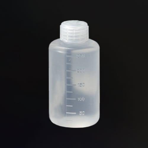 中栓がなく、作業性に優れたワンタッチボトルです。ポリプロピレンの中でも透明性の高いグレードを使用しています。