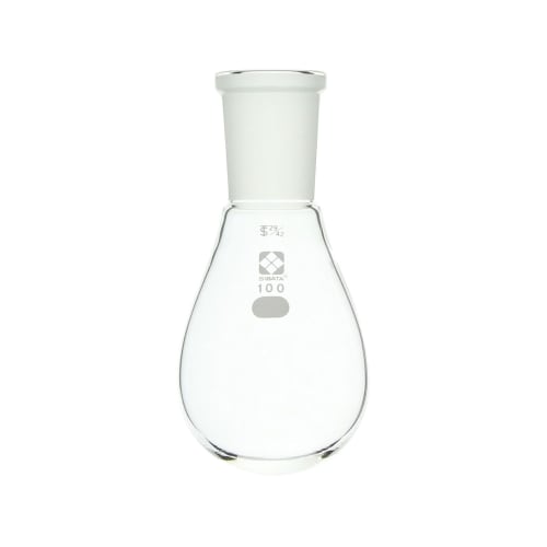 野菜のなすの形をしたフラスコです。肩の部分がないので、中の試料を取り出しやすく、洗浄がしやすい構造になっています。