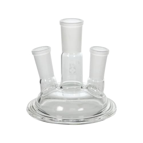 カバー部分とフラスコ部分が分離するガラス製のセパラブルフラスコ用カバーです。共通摺合せ(TS記号)規格の接続部には各種センサーの取り付けや試料の添加、ガスの導入・排気などに利用できます。