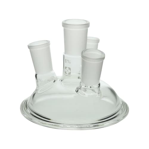 カバー部分とフラスコ部分が分離するガラス製のセパラブルフラスコ用カバーです。共通摺合せ(TS記号)規格の接続部には各種センサーの取り付けや試料の添加、ガスの導入・排気などに利用できます。