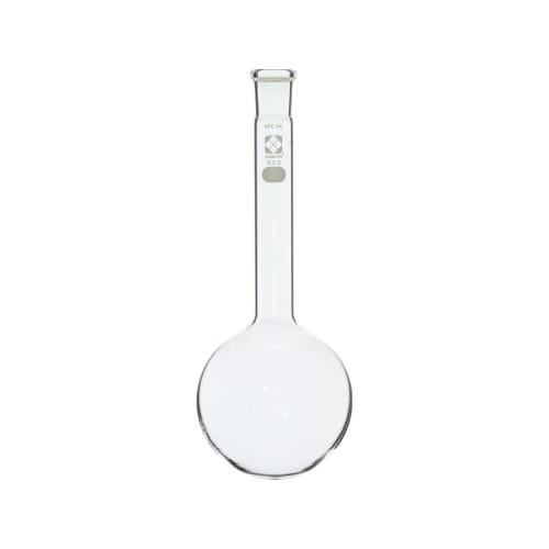 口元が細く、首の長さの長い球状をしたガラス製のフラスコです。口元に同じSPCガラス接手管規格のT形、C形が接続可能です。
