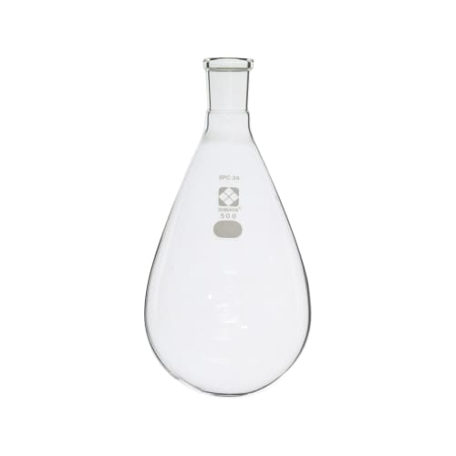 野菜のなすの形をしたフラスコです。肩の部分がないので、中の試料を取り出しやすく、洗浄がしやすい構造になっています。
