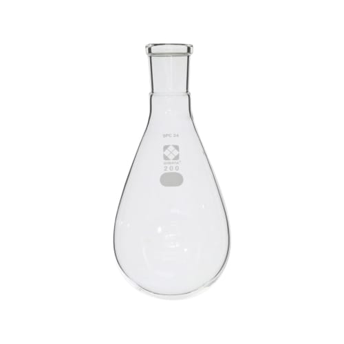 野菜のなすの形をしたフラスコです。肩の部分がないので、中の試料を取り出しやすく、洗浄がしやすい構造になっています。