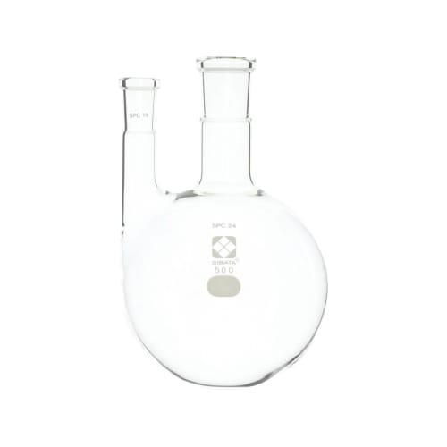 2ヶ所に接続口がある球状をしたガラス製のフラスコです。接続口に、同じSPCガラス接手管規格のT形、C形との接続が可能です。