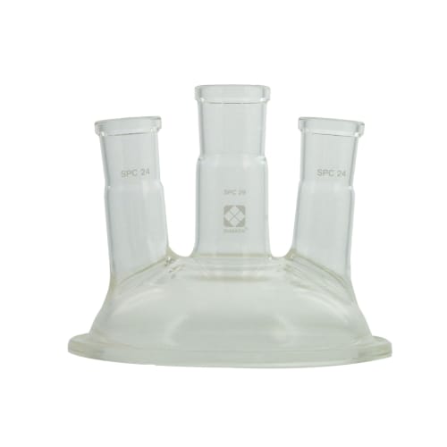カバー部分とフラスコ部分が分離する、ガラス製のセパラブルフラスコ用カバーです。SPC規格の接続部には各種センサーの取り付けや試料の添加、ガスの導入・排気などに利用できます。