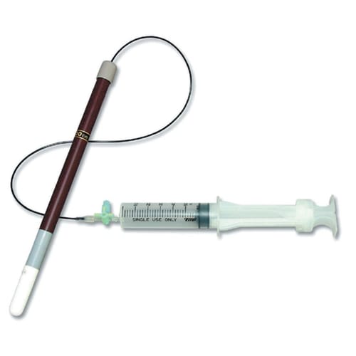 土壌中に埋設された多孔質素焼管から、直接土壌溶液を採取できます。市販の計器・試験紙等を用いて簡単に養分の状態を知る事ができます。