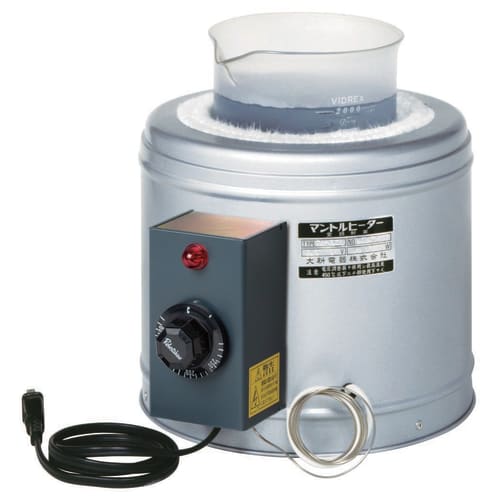 感温部を内蔵したマントルヒーターで、マントルヒーターの表面温度をコントロールします。ただし、内容液温度はヒーター表面温度とは一致しません。