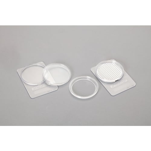 本体、フタ、リングで構成され、直径φ47mmのフィルターの観察や保存に最適です。リングをセットすることで、フィルターの反りを防ぎ、またフィルターが濡れていても容器に結露が生じないため、顕微鏡での観察にとても便利です。