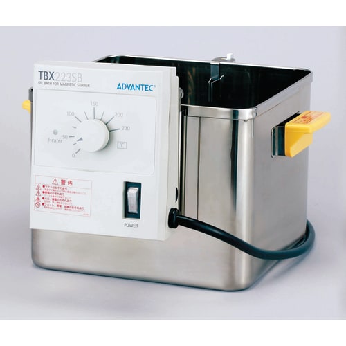 | 仕様補足 | ※油量の最低レベルは油槽の約半分までです。また、オイルの熱膨張を考慮し、試料が入った状態で設定温度に到達したときに7分目から8分目になるように給油してください。 ※熱媒体は油以外を使用しないでください。 ※棚板は別売品で用意しております。 |