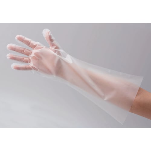 肘までカバーできる全長450mmのロング手袋で、作業がより衛生的。