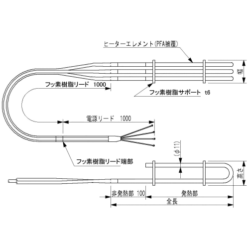 端子箱部分でのトラブルを解決。ヒータパイプからリード部分までフッ素樹脂で被覆されていますので、ヒーターパイプと電線をつなぐ端子箱部分での腐食や浸水・結露の心配がありません。