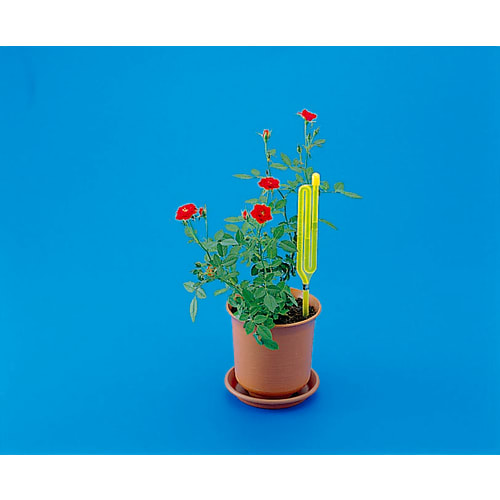 NEW水まきタイムはセラミックセンサーが土の水分を感じとり、本体に注いだ水の水位によって、土の水分が適切かどうかを知らせます。従来公共の試験場の農業関連施設などで広く利用されている「土壌水分センサー」から生まれた簡易水分検知器です。