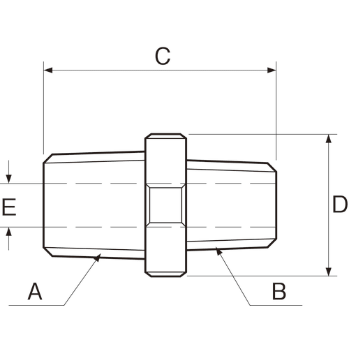 左右のネジがオスのテーパーネジになっています。各種バルブ、容器、装置などのジョイントとしてご使用ください。