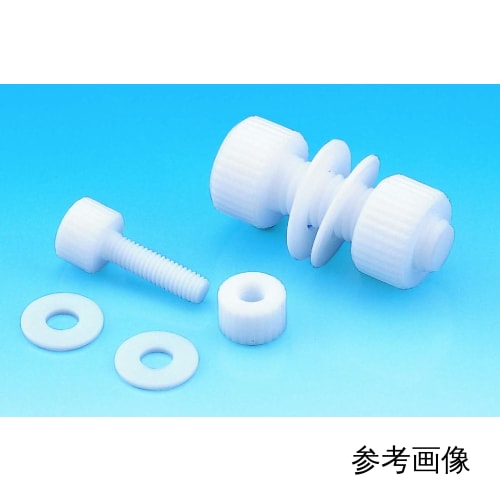 フッ素樹脂ボルトは、耐薬品性、非粘着性、耐熱性にすぐれています。実験装置、メッキ槽、絶縁性などの場所にご使用ください。