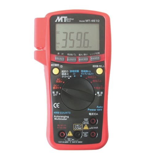 電圧・電流レンジにMAX/MIN機能付き。静電容量・周波数・デューティー比の測定可能。