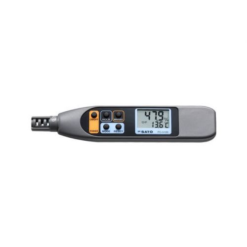 重さわずか49gのペンタイプの小型軽量のデジタル温湿度計です。小型ながら温度湿度の表示だけでなく湿球温度と露点も表示可能です。ポケットに入れての持ち運びに回転式のセンサ部保護キャップ、フックが付き、無駄な電池消費を防ぐオートパワーオフ機能(20分)も備えています。