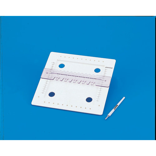 従来、サンプルの塗布位置は分析者が定規などでTLC板に印をつけ、塗布を行ってきましたが、本スポッティングガイドを使用することにより簡単にサンプル塗布ができます。