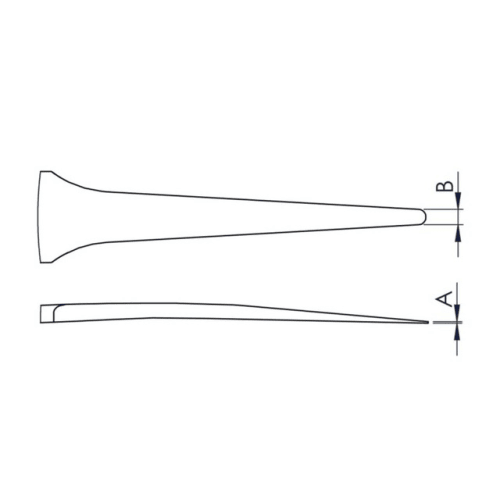 平面的で丸みを持った先端です。チタンは軽量のため、使用時の疲労軽減が期待できる