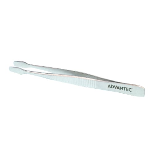 メンブレンフィルターを傷つけずにはさむことができるように、ピンセット先端を平滑にしています。