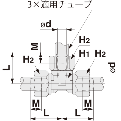 | 適用チューブ材質 | FEP・PFA・変性PTFE・軟質フッ素樹脂2層・ナイロン・ソフトナイロン・ポリオレフィンポリウレタン・ソフトポリウレタン・ハードポリウレタン・ソフトポリオレフィン・帯電防止ソフトナイロン・帯電防止ポリウレタン |